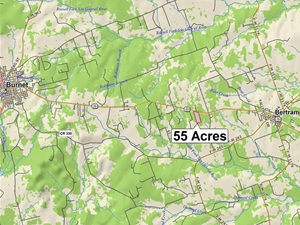 55 acres of unrestricted land located on Hwy. 29 just west of Bertram. This well shaped tract is flat and covered with mature oak trees. There are a number of potential uses for this property including commercial, residential, or multi-use. Situated in one of the fastest growing stretches of highway in the Austin area (the Hwy. 29 corridor between Liberty Hill and Burnet), this property offers significant investment upside. 12 miles to Liberty Hill and within 45 minutes of downtown Austin. Property Summary SheetLOCATION: Hwy. 29 just west of Bertram SIZE: 55 acres